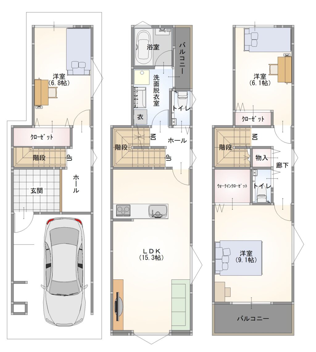 所在地:大阪市阿倍野区播磨町2-10-3 現況:更地 向き:東向き 道路幅員:5.4m 地積:54.06㎡ 建ぺい率:80% 容積率:300% アクセス:メトロ御堂筋線『西田辺』駅徒歩8分 学校:阪南小学校まで徒歩7分 取引態様:売主 土地価格:3261万円 (参考プラン)↓ ↓